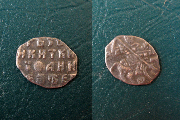 Здравствуйте! Подскажите по монеткам, пожалуйста. Одна полушка - можно понять чья? Вторая - вроде васильки Ивана 3?
