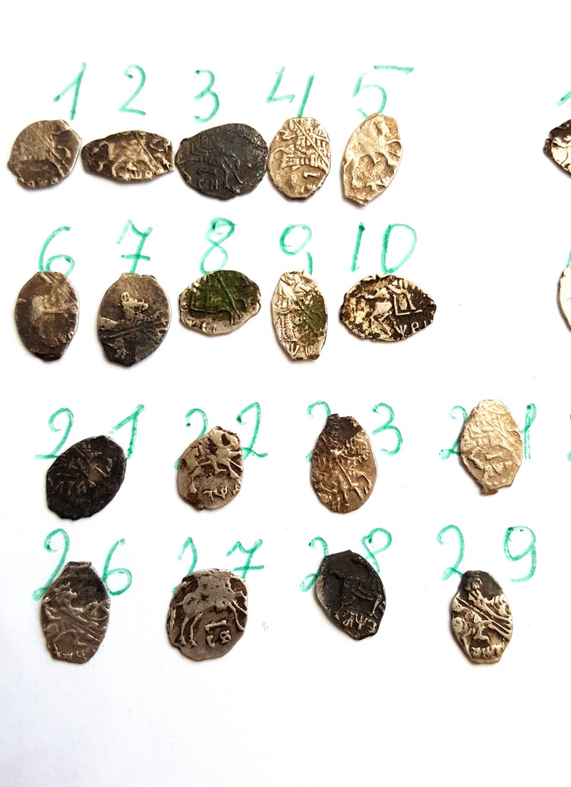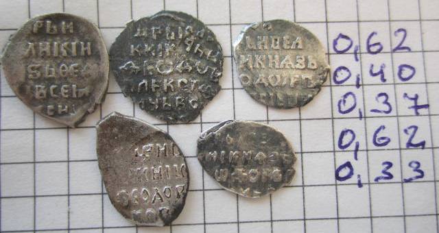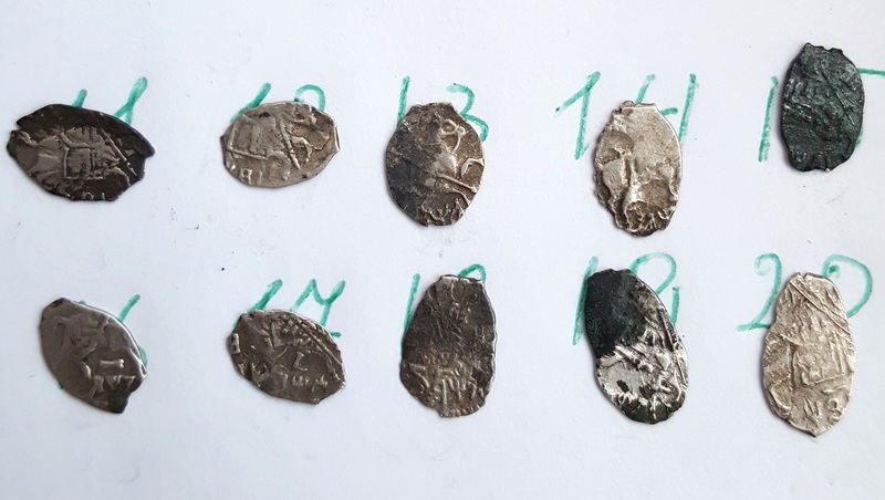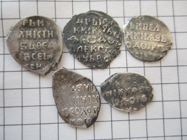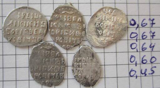 QUOTE(D-kl @ May 13 2016, 22:33) Доброго времени уважаемые форумчане,сохран конечно не очень но все же просьба помогите пожалуйста с определением и оценкой данных монет,заранее спасибо. ![]() ![]() 1. Василий Дмитриевич, Нижний Новгород; 2,5. дирхемы Золотой Орды; 3. Великокняжеский чекан Юрия Дмитриевича Звенигородского; 4,6,8. Даниил Борисович, Нижний Новгород, тип "собачки"; 7. поздний ВД / ранний Василий Тёмный. -------------------- Куплю бронзовые замочки "лошадки" 14-15 вв. (половинки и целые) . Предложения в личку.