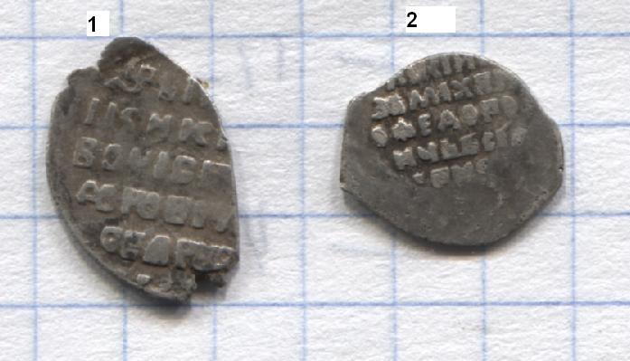 QUOTE(koshe_voi @ Oct 4 2016, 00:30) Друзья, эти трупики наверно не индифицировать? Верхняя скорее фальшак пер пол 15 в, сложно идентифицировать; Нижняя- обломанная денга Василия Тёмного, 1440-е гг. Сообщение отредактировано Borisswd: Oct 3 2016, 23:56 -------------------- Куплю бронзовые замочки "лошадки" 14-15 вв. (половинки и целые) . Предложения в личку.