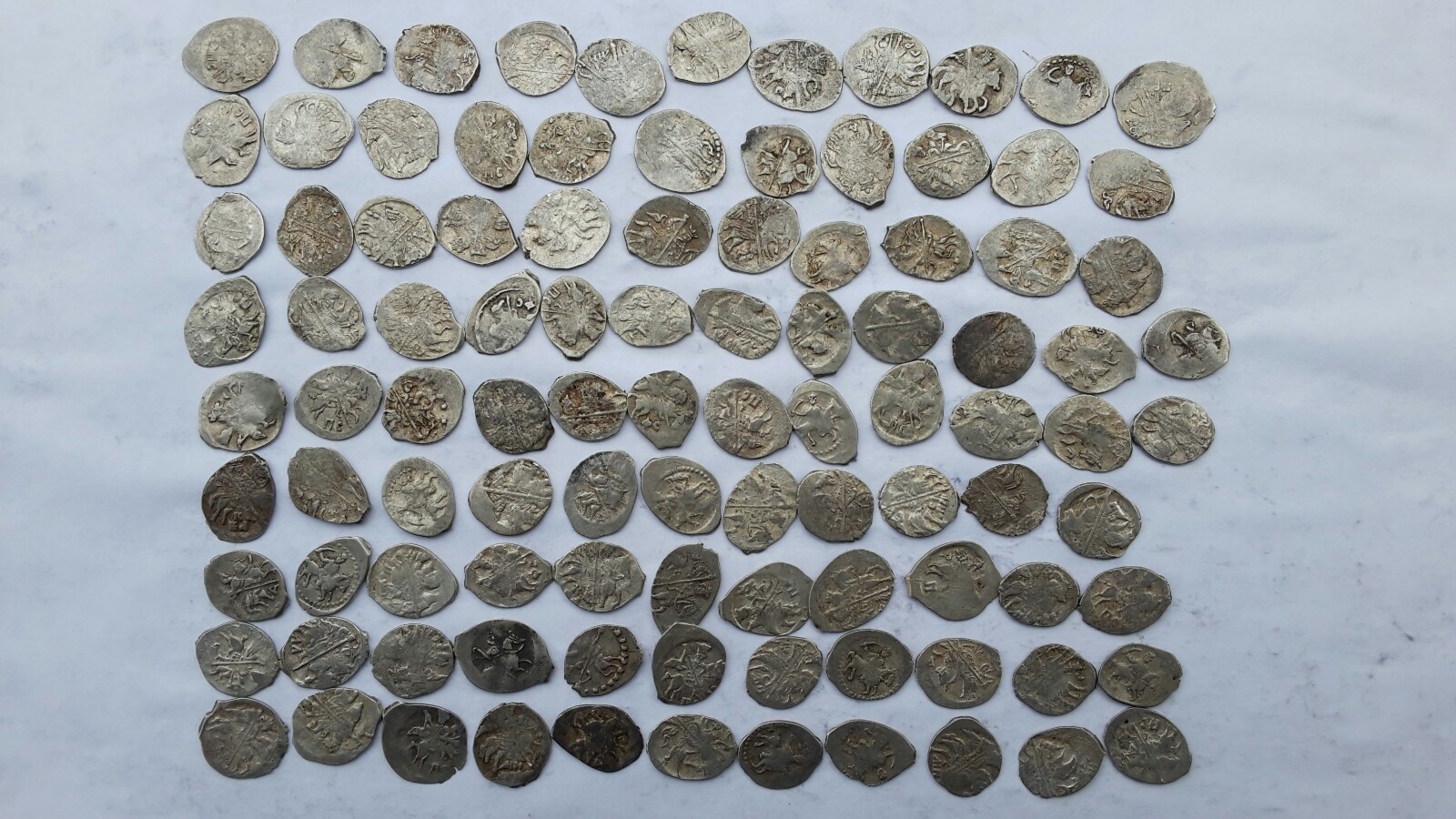 QUOTE(Витаминычь) @ Oct 5 2016, 17:28) Добрый вечер! Сверху-вниз, слева-направо: Копейка Ивана Грозного ГКХ №21; Денга Ивана Грозного "односторонка";Копейка совместного правления с именем Петра ГКХ 1111; Копейка Алексея Михайловича ГКХ 793; Пуло Новгородское; Копейка Федора Алексеевича ГКХ 967; Тверская денга Ивана III; Копейка Петра I; Копейка Ивана Грозного ГКХ №21. На аукцион со 100 р., свое наберет. |