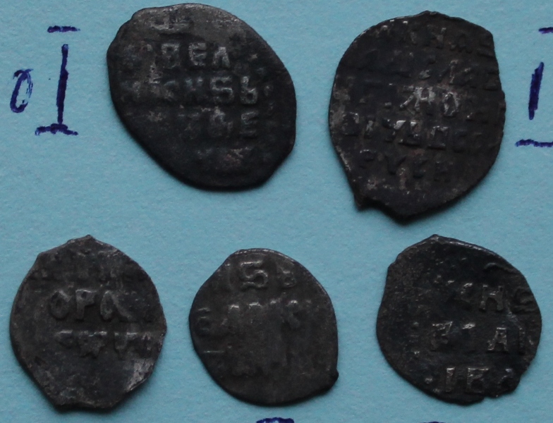 QUOTE(mulenya @ Oct 8 2016, 17:04) Здравствуйте. Подскажите по чешуе. К сожалению весов нет. Спасибо. Добрый вечер! 1. Копейка Бориса Федоровича КГ173 очень частая. 2. Копейка Владислава Жигимонтовича КГ296 3. Предположу что когда-то была неплохая денга Михаила Федоровича КГ675 4. 5 Денги Ивана Грозного, КГ-? |