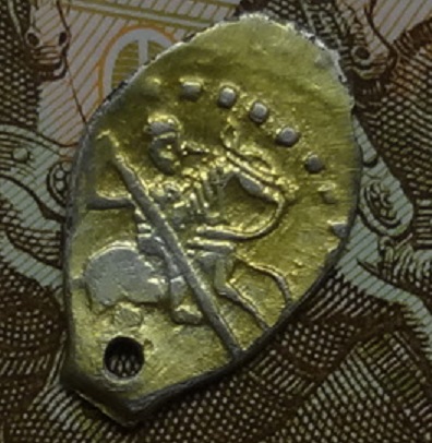 Здравствуйте уважаемые форумчане.Вчера на копе попалась интересная монетка,Новгородская анонимная копейка Ивана Грозного,я думаю позолоченная, что это,рукоблуд или наградная монета для низших чинов?Прошу вашей помощи в определении по данной монете.