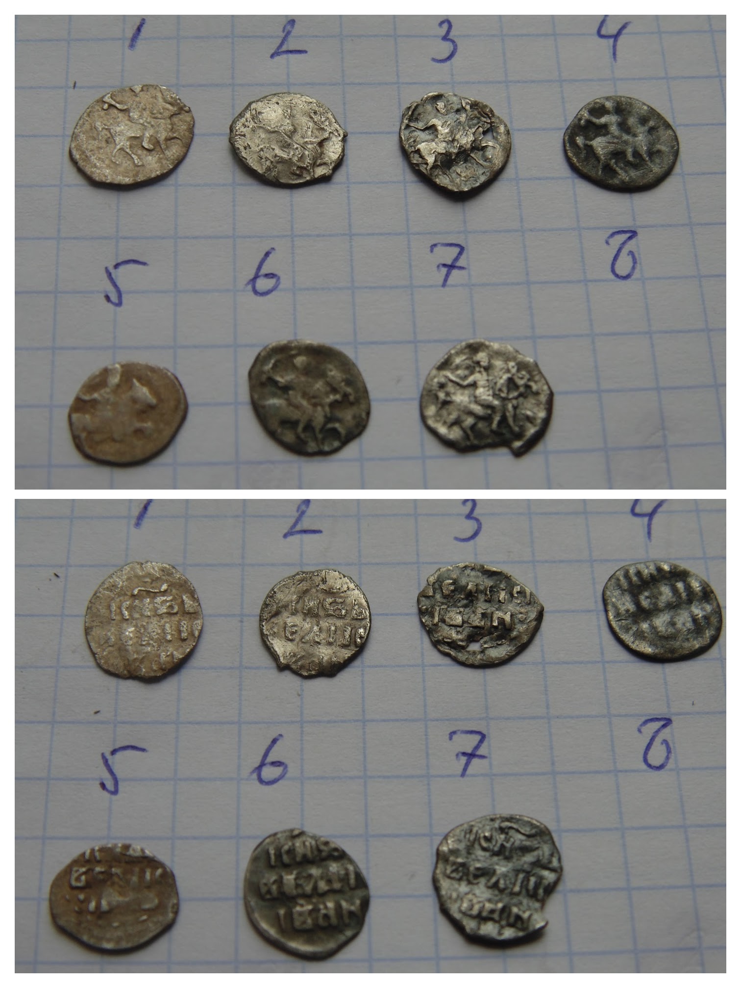 QUOTE(Михаил Петрович @ Oct 20 2016, 12:51) Прошу определения и оценки, заранее спасибо. Материал:медь. Вес: 0.40 гр Пуло 1,2-Московское, 3-Тверское |