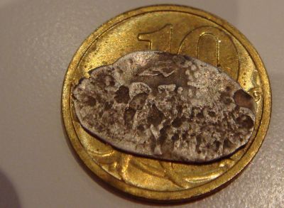 QUOTE(Fishki @ Oct 4 2010, 09:11) попалась вот такая. чешуйка не чешуйка? смущает что то меня ее размер и рисунок если его можно так назвать по оставшимся деталям. на второй фотке 4 точечки какие о на 1 час... что за монетка? Михаил Фёдорович, наипростейший. Точки - туловище всадника. -------------------- новый каталог по царской чешуе