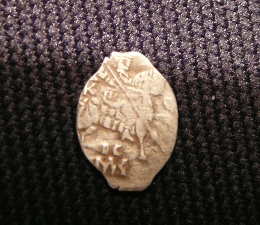 QUOTE(Лёлька @ Oct 5 2010, 22:23) Помогите с атрибуцией монетки, пожалуйста. Василий Темный, нечастый, лицевик с петухом "достался" Темному от великокняжеского чекана Дмитрия Юрьевича Шемяки. |
