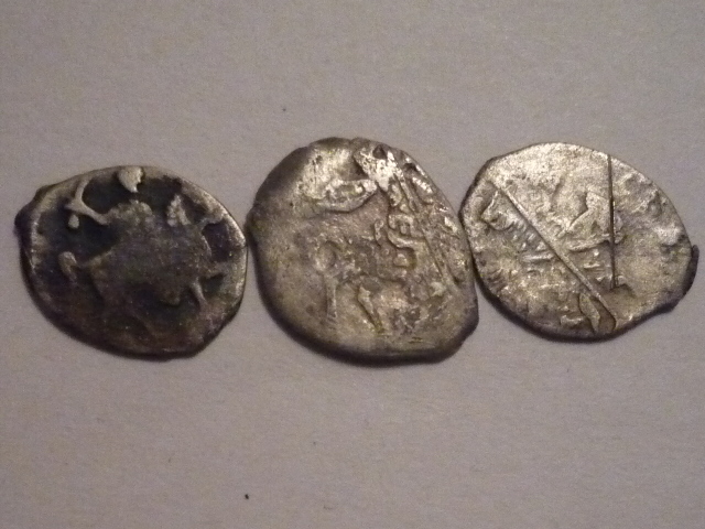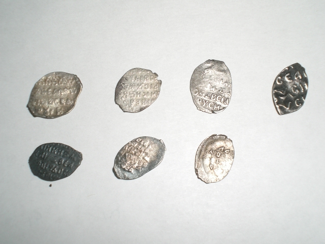QUOTE(ДЮША @ Oct 18 2010, 21:48) Подскажите пожалуйста, что за чешуя? 1 - двустороннее подражание Суздальско-Нижегородского княжества 2 - Храбрый, Серпухов 6 - Пётр остальное - Грозный -------------------- новый каталог по царской чешуе