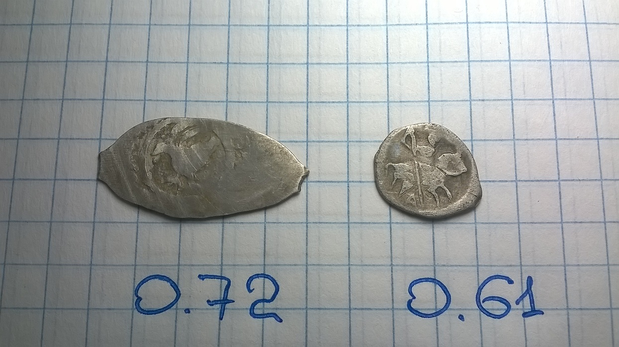 QUOTE(ВРК @ Jun 26 2017, 17:57) Приветствую!Подскажите по чешуйкам Определение и оценка.С ув Дмитрий. Вес. 0,68г. 0,65г. 0,70г. 0,69г. 0,33г 0,66г. 0,35г. ![]() ![]() 1- Федор Иванович по КГ № 134, 2- Федор Иванович № 136, 3-Василий Шуйский № 249, 4-Борис Годунов №173, 5-денга Грозного №60, 6-Борис Годунов №173, 7-денга Федора Ивановича №105. Все простые без степени редкости |
