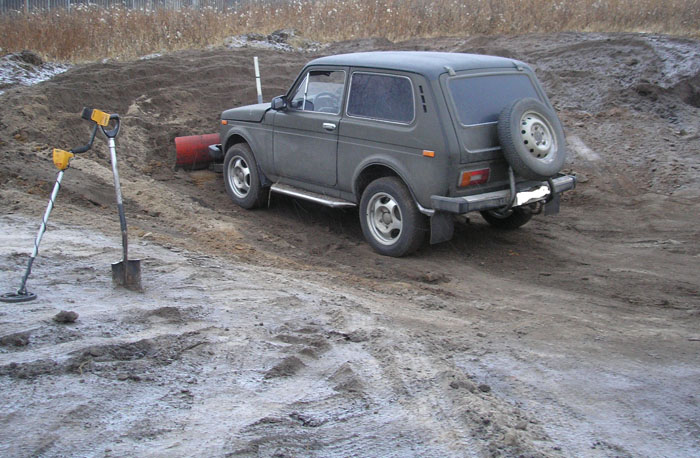 Мы с другом нашли на свалке старый плуг от лошади укоротили его , он еще разбирается и в машину + квадрик и поехали , приезжаем на место цепляем к квадрику, один за руль , другой за плуг и поехали отлично получается.