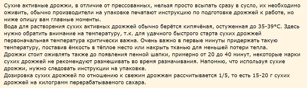 Я пользуюсь только вашими Воронежскими сухими дрожжами и считаю их самими лучшими для нашего дела. Бродит 10-12 дней потом бентонит и перегон. Сухим дрожжам надо для разбраживания температуру потеплее 35-39*. Я в этом деле новичек и делаю по инструкции