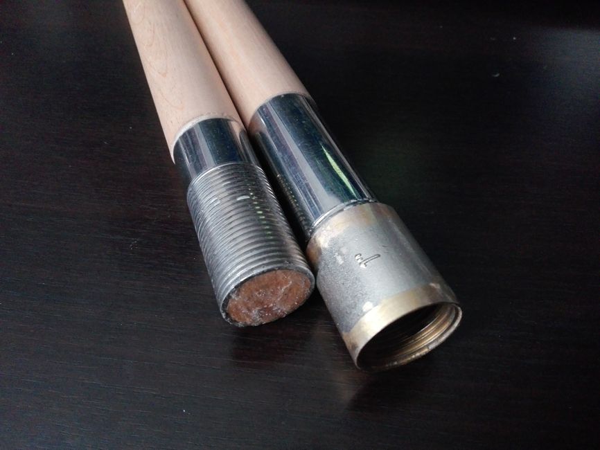 QUOTE(Gera_ @ Mar 28 2018, 22:38) У меня получился вот такой вариант соединения на деревянный черенок. Правда я его сделал на скуб, а не на лопату. Это два дюймовых сгона и муфта из магазина сантехники. Может будет полезно... Сгона нужно было брать два и резать длинную часть резьбы, оставляя короткую с трубкой, тогда вся резьба была бы закрыта муфтой с обеих половинок. В обязательном порядке советую их на черенке зафиксировать, ибо при затяжке они начнут проворачиваться. В зависимости от того, чем обрабатывалось дерево, и как было насажено, может слететь. Для скупа я бы пропитал перед насадкой воском, а зафиксировал каждый коротеньким саморезом в середине каждой половины. -------------------- Моя почта evzh39@mail.ru, если не могу входить на форум из-за блока моего провайдера. Карта СБ *6610