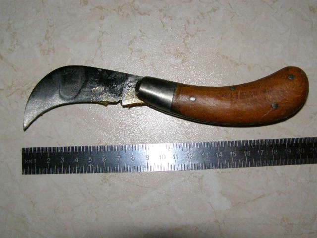 QUOTE(Петрович @ Mar 12 2009, 16:37) О!!!!Это знаменитый садовый нож.Помню его с детства.Он у многих тогда был-лет 40 назад.Был и у моего деда.Пожалуй,с этим ножом связаны самые хорошие и тёплые воспоминания.Помню,как дед им нарезал яблоки,сало и хлеб.Резал "на себя".Так уже давно никто ничего не режет-страшно. Точно-нож для работы с плодовыми деревьями.Прививки.Старый ржавый в сараюшке подобрал,почистил,обновил...Теперь даже не пользуюсь-как сувенир.Форма лезвия оригинальная и рукоятка под тёмным лаком -------------------- Если ищешь что-нибудь,то обязательно находишь,но не обязательно это будет то что искал.