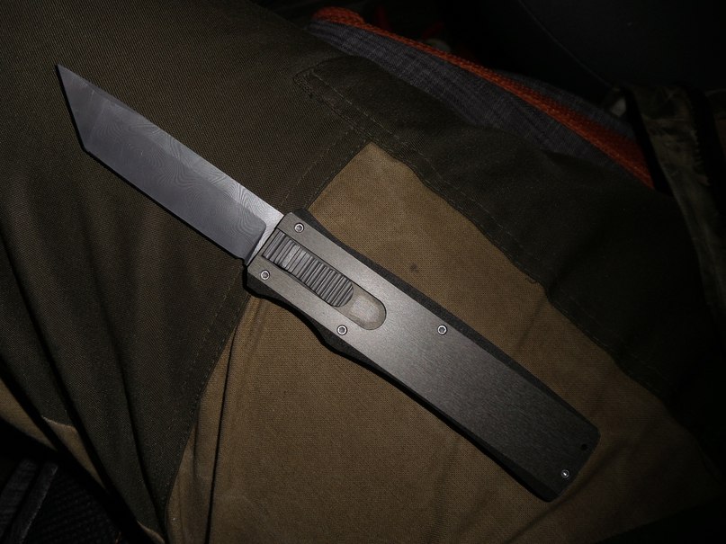 А я для повседневного использования люблю фронталки. Удобно в быту использовать,вытащил из кармана одной рукой,кнопочку нажал,что нужно отрезал разрезал,опять кнопочку чик и в карман.Быстро и удобно.Красота! Сейчас у меня фронталка Титова. Классная вещь,дамасск 160 слоём,в руку отлично садится,выемка под палец удобная,вес лёгенький.Вобщем стоит своих денег.