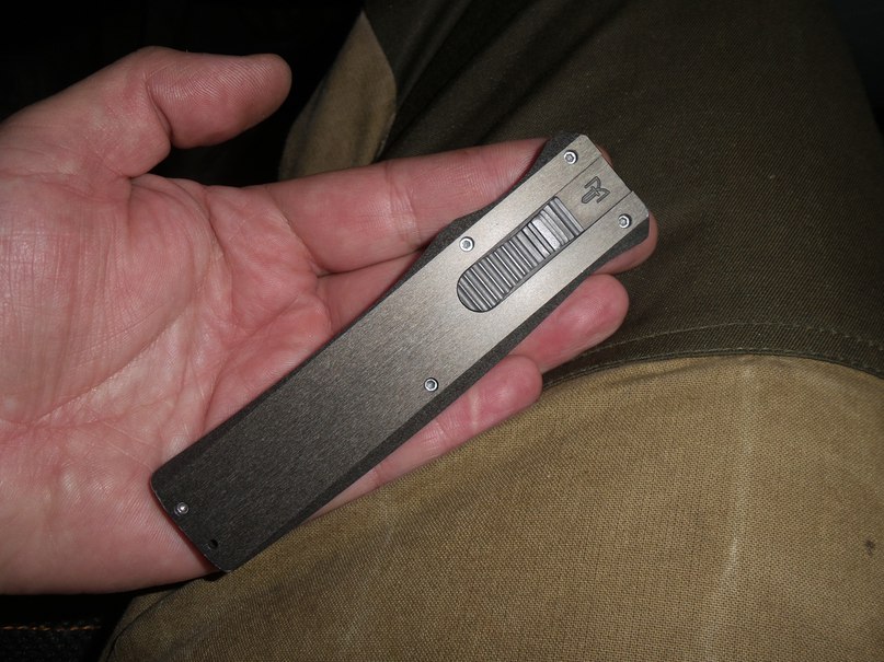QUOTE(Денис Смирнов @ Mar 11 2016, 20:37) А я для повседневного использования люблю фронталки. Удобно в быту использовать,вытащил из кармана одной рукой,кнопочку нажал,что нужно отрезал разрезал,опять кнопочку чик и в карман.Быстро и удобно.Красота! Сейчас у меня фронталка Титова. Классная вещь,дамасск 160 слоём,в руку отлично садится,выемка под палец удобная,вес лёгенький.Вобщем стоит своих денег. Приветствую! А как с люфтами? -------------------- В случае победы на аукционе, сообщите, пожалуйста, в "личку".;-)