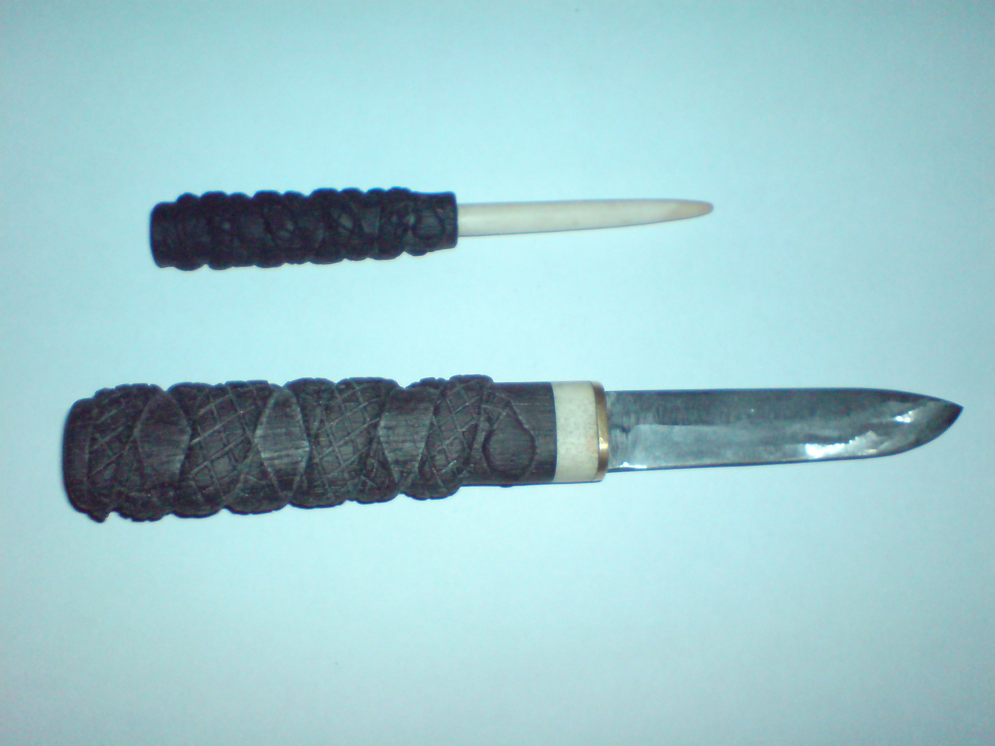 Доброго времени суток, строго не судите, один из первых сделанных ножей, сталь быстрорез,латунь,рог,мореный дуб .