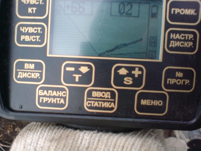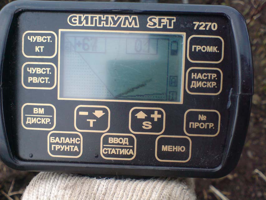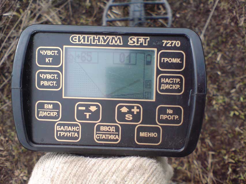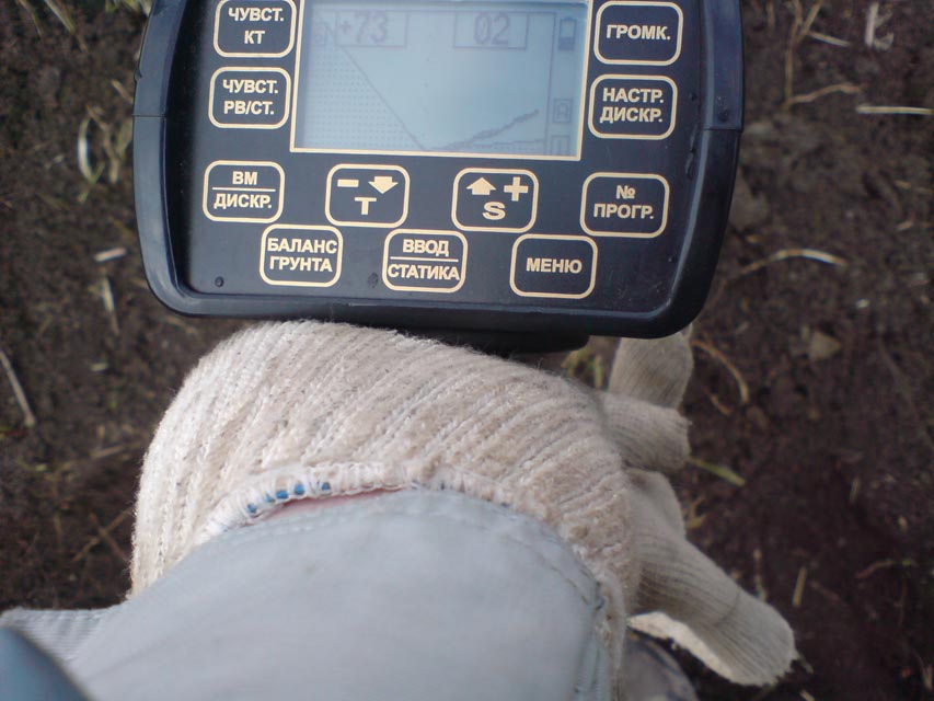 Колеги, нужна помощь зала, примерно как в игре "кто хочет стать миллиоером". Сегодня съездил на разведку, на место раньше была небольшая деревушка. Дороги туда нет, думал что современного металломусора там быть не должно. Хотел покапаться и Сигом поучится работать. На месте свежих следов прибывания людей не было. В результате столкнулся с такой проблемкой: почти при каждой проводке, выдает цветной устойчивый сигнал. На годографе стрела в цвете, и короткий высокий сигнал, на фотках видно. Сначала работал на 3 программе + дискрим. Потом решил попробывать 2 и потом 1. Прикол в том что при копке нихрена не нашел, сигнал есть, а цвет мета нет. Земля рассыпчатая, хорошо перетряхается. Но на что МД срабатывает понять не могу. В выворочаном комке земли показывает цвет сигнал, руками переберал - нет ничего. Времени разбираться уже небыло, погода настала не летная и возвращаться надо было.