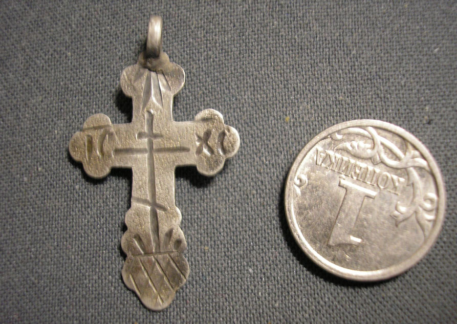 Сразу всё встало нормально! Лучше потерять в глубине, но без глюков - подумал я.... Увидел небольшой, стреловидный сигнал ВДИ +70. Попросил товарища с Т-74+10"ДД проверить, тот поводил-поводил... тихо!? Чуть откопал ВДИ +20 (!?) Выкопал нательный серебрянный крестик ~25мм. -------------------- ЛИЧКА - НЕ РАБОТАЕТ !!! НЕ ПИШИТЕ !!! НЕ ОТВЕЧУ!!!