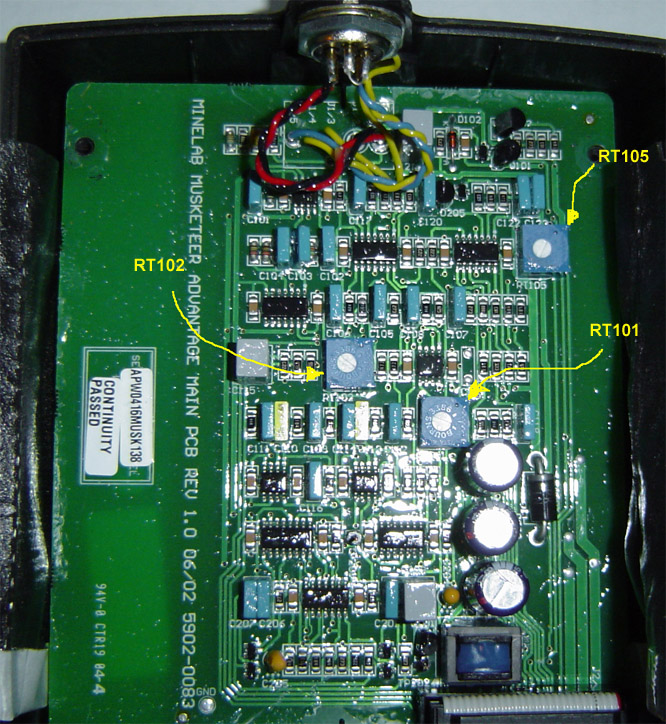 QUOTE(Кулибастер @ Jan 28 2018, 18:03) Доброго вам уважаемые самоделкины. Прошу помочь определится какой подстроечник за что отвечает? Плата Минелаб Мушкетёр. Несколько лет назад занимался этим прибором. Полной схемы нет, но основное есть. R102 - это подстройка земли в фиксированном режиме (авто). R101 - это на 80% (R201 по схеме) - подстройка усиления канала все металлы. Если нет нужной аппаратуры лучше не трогать иначе скрутите дискрим. R105 - не знаю. Судя по печатке идет напрямую на 26 pin разъем. Вложенные эскизы изображений |