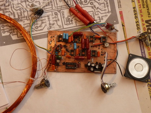 Эльдорадо заработал! Впечатления самые приятные. Даже с ненастроенной тестовой катушкой в таком виде как на фото работает дискрим и пинпоинт. С помощью ручки GB получается отстроиться от помех это при том что у меня катушка лежит на столе рядом с осциллографом.