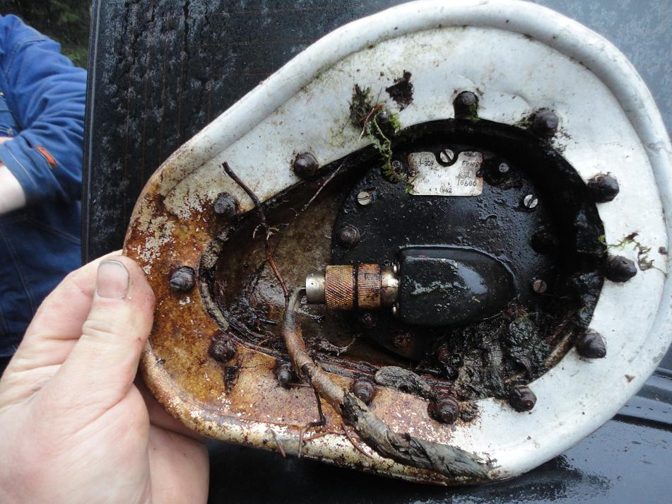 Первое ,что стало попадаться это остатки топливного бака. очень много резины от него. Глина хороший консервант, остатки топлива даже сохранились и в итоге оно вытекало в котлован. Потом показалась лопасть, отломанная. ![]() ![]() с пулевым отверстием. Вместе с лопастью были подняты части карбюратора. Интересная находка, чёрный алюминий, бронзовые болты, даже пломба сохранилась. ![]() ![]() ![]() потом следом показалось вооружение и какойто маленький электромоторчик ![]() Это детали на мойке. сразу всё отмывали, помпой. Глина смывалась довольно легко. все детали, как новые. На пулемёте есть номер. Надо отметить, что впринципе, все детали имеют какие то номера и маркировки. ![]() ![]() ![]() чуть в стороне, примерно в 1-2 метрах, вытащили ещё много искарёженного алюминия, бронелист и кусок гандолы ![]() ![]() |