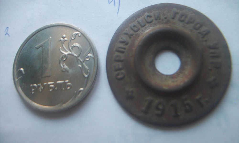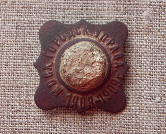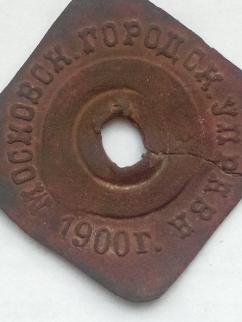 У меня тут нарисовалась ещё одна, треугольной формы, с изображением серпа и молота и надписью "1925 г. ТР ОТД М.К.Х." Отверстие по центру типичное для всех этих бирок. Место находки позже выясню, точно не в Москве! Это меня и смущает больше всего!