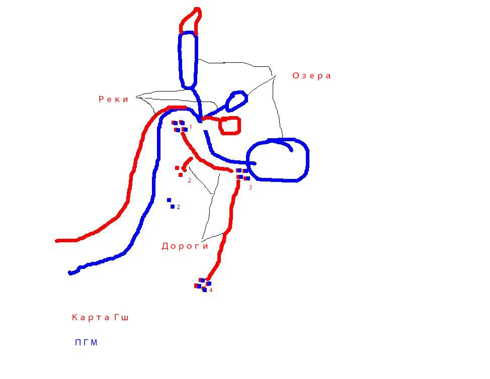 Забыл на картинке написать, кружочки и овалы это озера, а линии речушки.