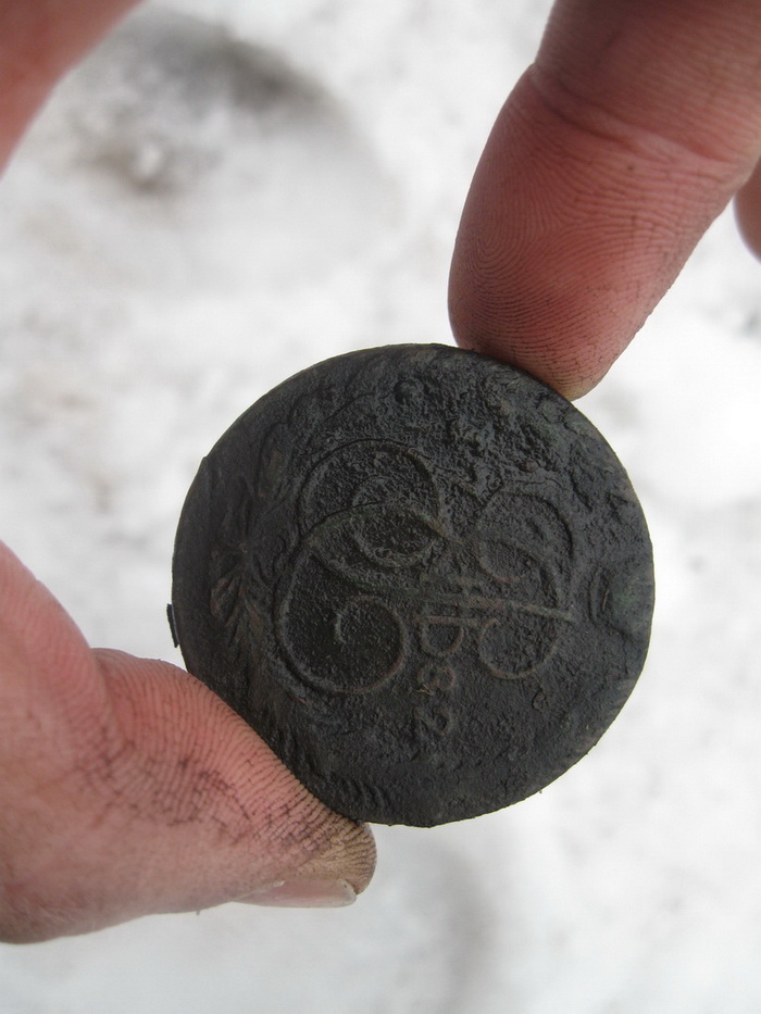 да уж.находки неплохие.у нас ещё снегу поколено.но всёже вчера и мы не удержались,пошлис братом.4 км пешком,несколько пригорков без снега,но удовольствия куча.поколотили мороженной землички.итог:2 копейки 1758 года,денга 1730,5 копеек 1789 года.пожалуй это были самые наши трудные находки.земля ещё очень заморожена,даже на южных склонах.