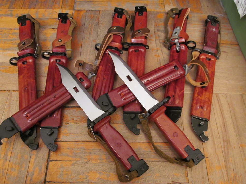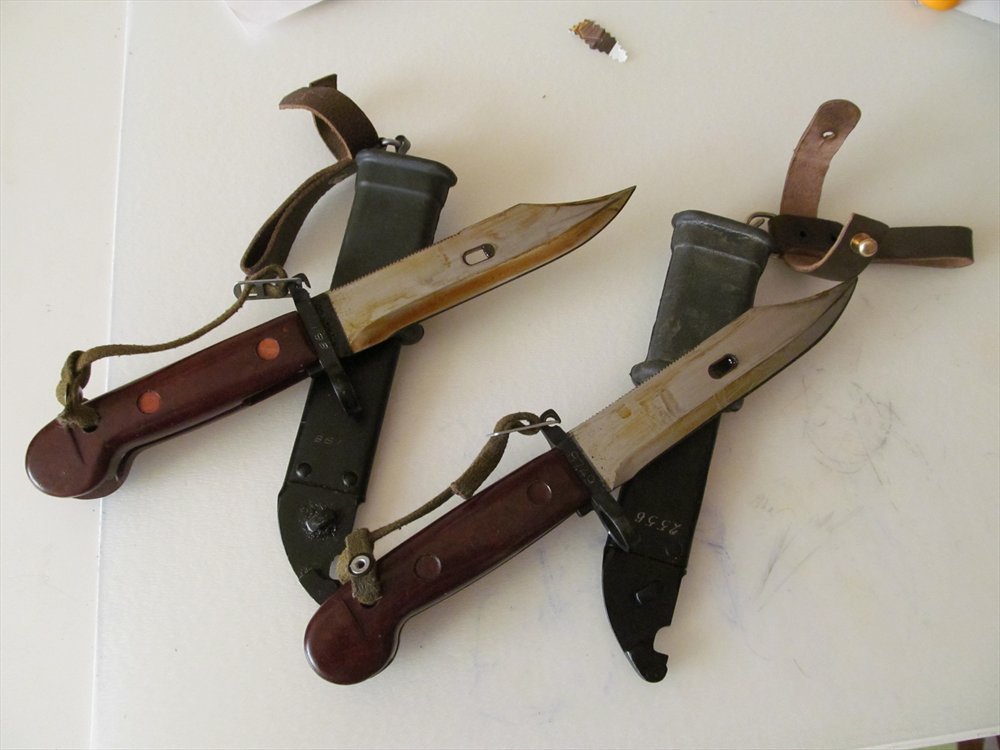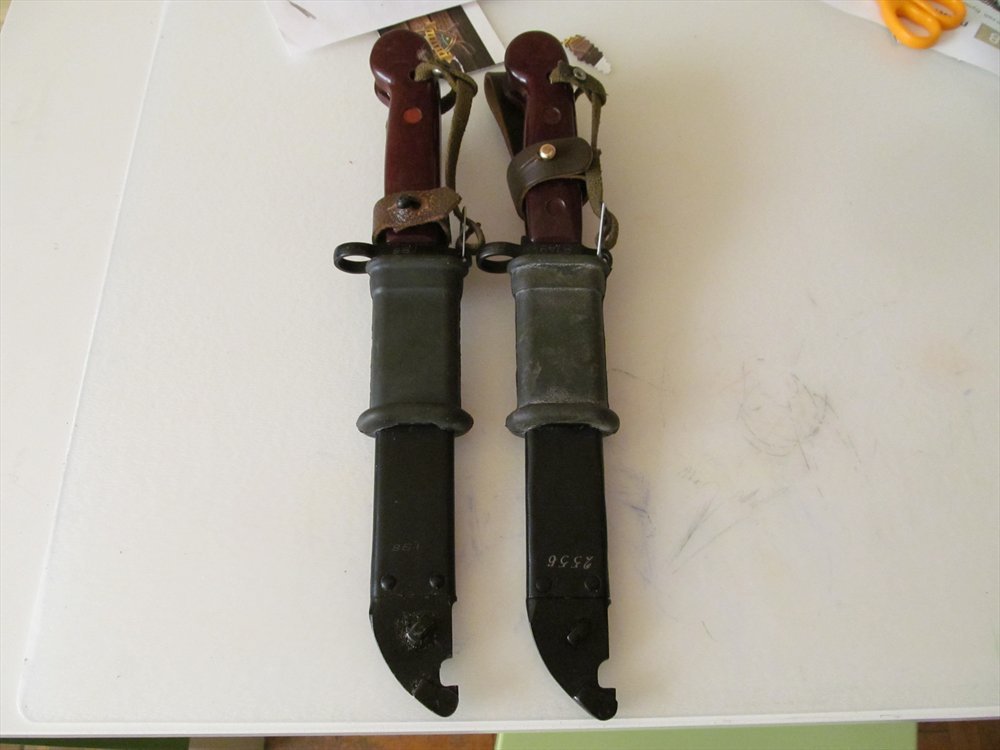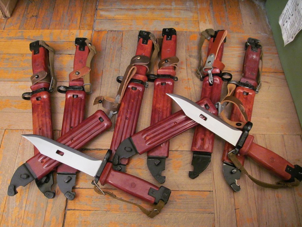 На сегодняшний день -появилась небольшая кучка предметов -а именно -2 штыка 6х5 (цвет правда не понятен -то-ли черный толи темная слива-думаю что все-же слива!!)-они без подвесов -состояние считаю отличное!!Залог за каждый из этой пары- 3200 рублей и пересыл!!Есть парочка 6х3 в масле !!Один туляк с парными номерами- другой ижевский но он непарный !!!!Залог за туляка парного 3700 р и пересыл -за непарного ижевца 3400 и пересыл!!И восемь штук 6х4 рыжики(обычные широкая антабка)- состояние оч.хорошее -залог за них 3200 р и пересыл!!