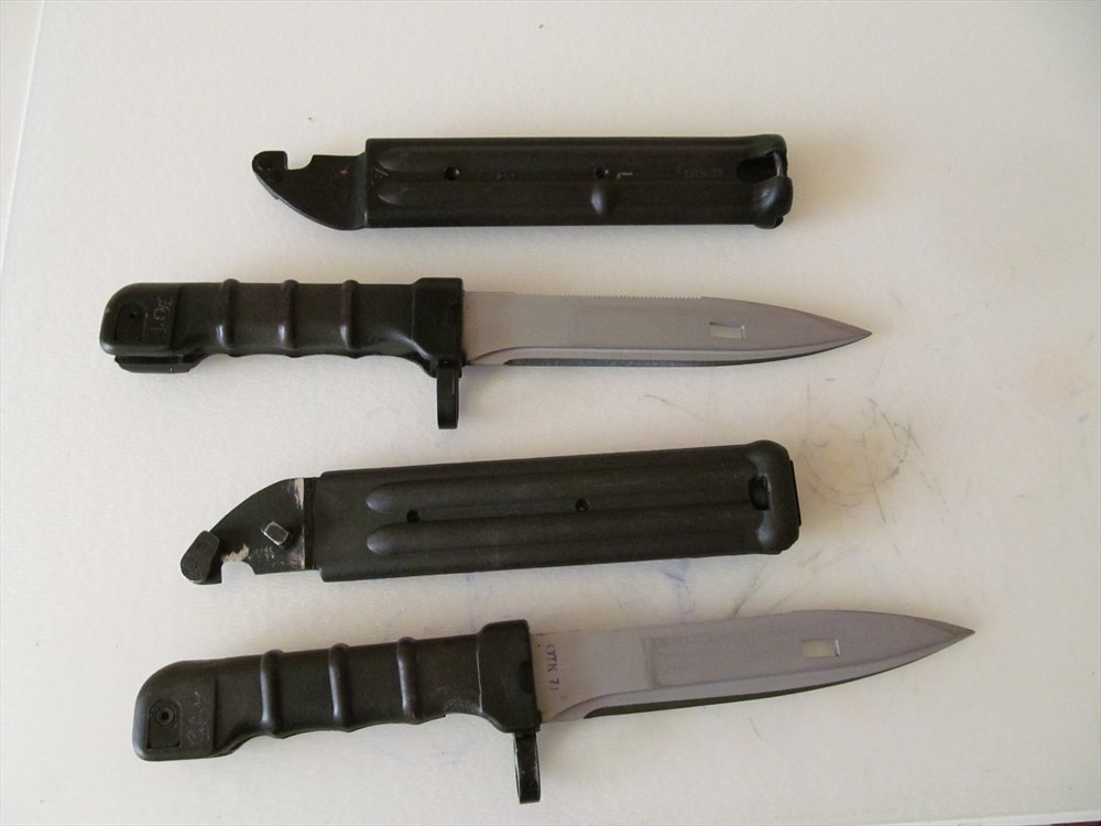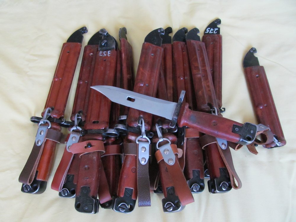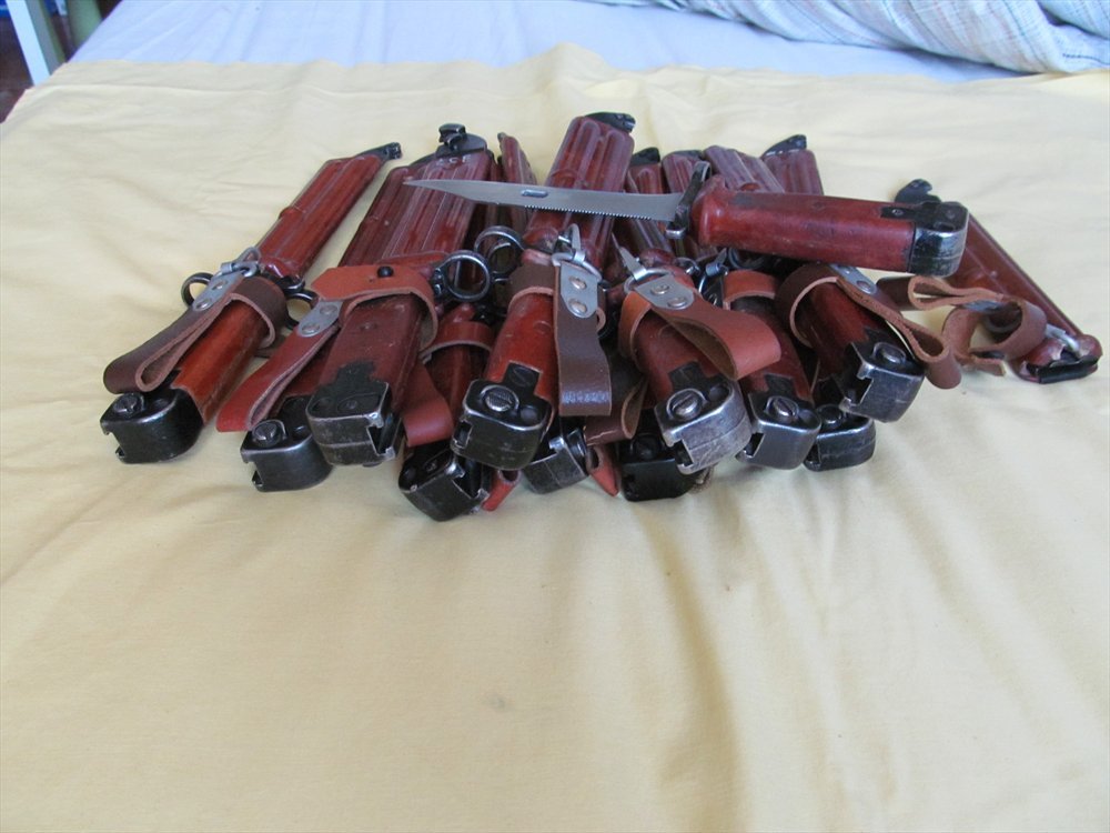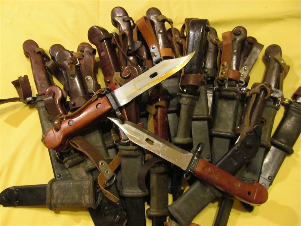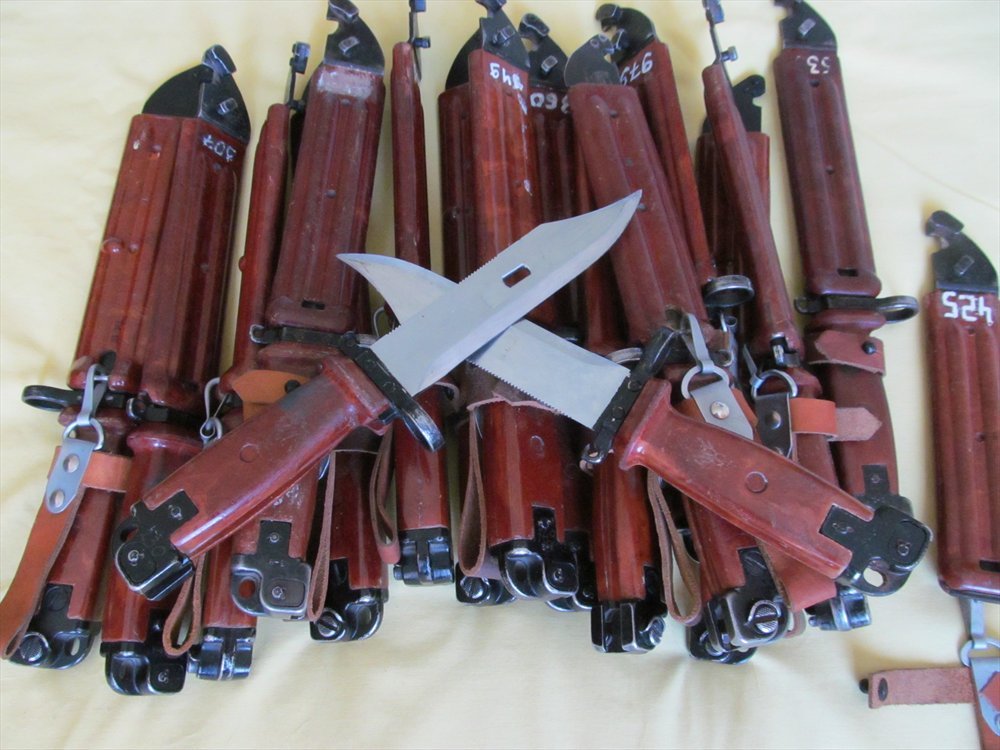 На сегодняшний день -появилась небольшая кучка предметов -а именно -2 штыка 6х5 (цвет правда не понятен -то-ли черный толи темная слива-думаю что все-же слива!!)-они без подвесов -состояние считаю отличное!!Залог за каждый из этой пары- 3200 рублей и пересыл!!Есть парочка 6х3 в масле !!Один туляк с парными номерами- другой ижевский но он непарный !!!!Залог за туляка парного 3700 р и пересыл -за непарного ижевца 3400 и пересыл!!И восемь штук 6х4 рыжики(обычные широкая антабка)- состояние оч.хорошее -залог за них 3200 р и пересыл!!