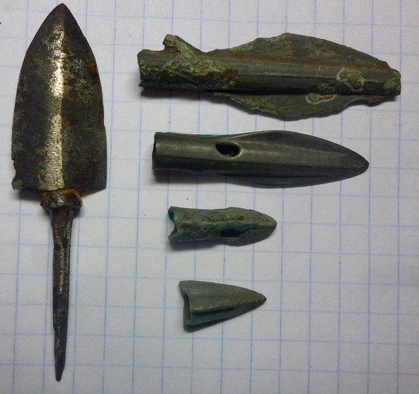 QUOTE(zoban @ Oct 26 2018, 23:14) Здравствуйте. Наконечники, бронзовые, найдены в разных местах в Волгоградской. Подскажите, можно предметы атрибутировать и датировать, примерно конечно. Спасибо за внимание. Добра! Верхний ряд - 8-6 вв. до н.э., жаботинский тип Нижний ряд - 1-3 скифы 7-пп. 5 вв. до н.э., 4 - 6-пп. 4 вв. до н.э. |