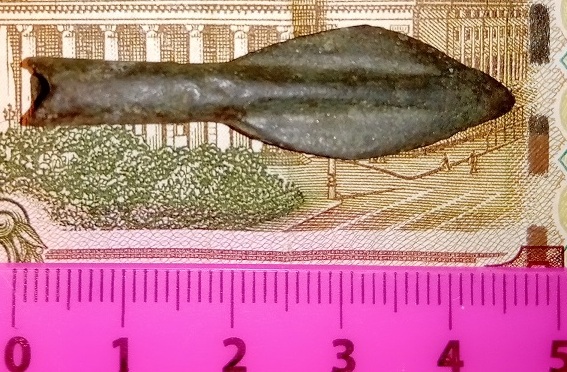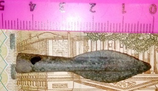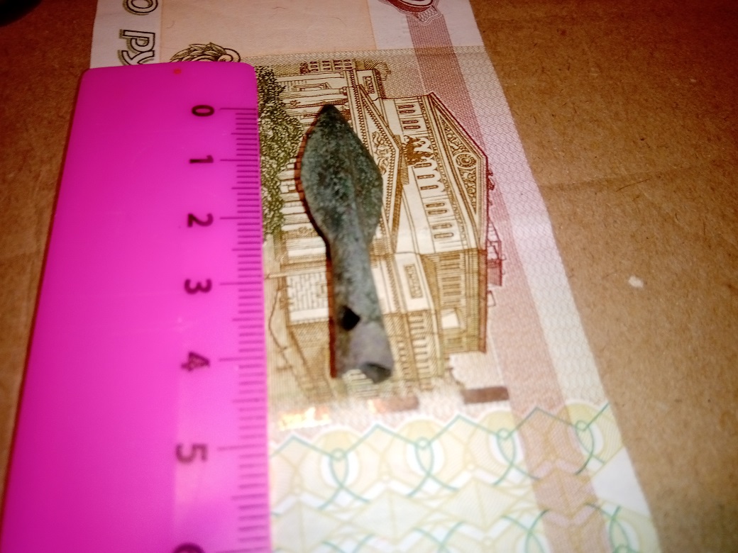 Добрый день коллеги, сегодня поднял вот такой предмет, помогите определить, что это такое, длина 8см. с трех сторон заточен, похоже на бронзу, найден в нижегородской обл. с ув.