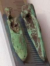 Доброго времени суток. Прошу помочь в определении наконечника стрелы. Найден в Воронежской области. Материал - бронза. В сопутке рядом попалось 2 одинаковых кованных гвоздя (третье фото) Скифы 5-3 в до н.э. Гвозди от подковы. |