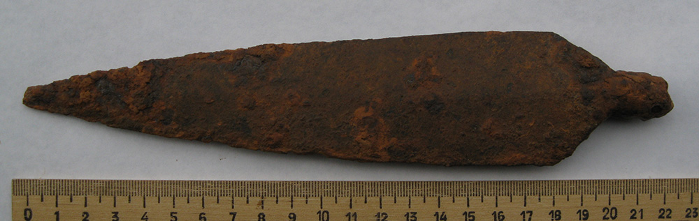 Всех приветствую. Есть вот такое копьё (я его так называю). Имеется бронзовая скоба, как бы скрепляющая его по "шву". Хотелось узнать, может это Хазарская пика, а может относится к Киевской Руси, может к другому времени.