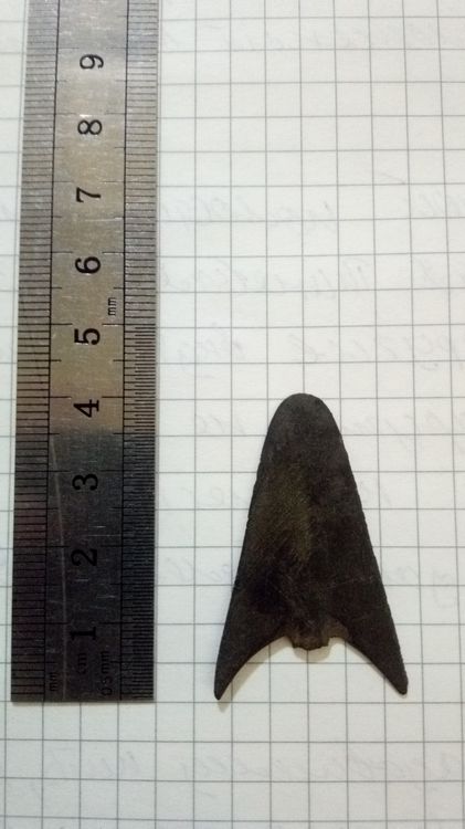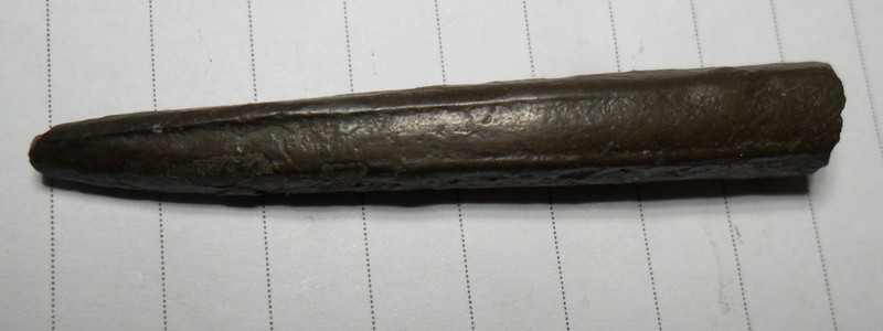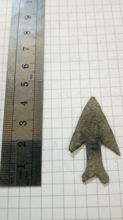 Согласен-фото не очень. Прислали новые , немного получше. Проблема еще в том у нас пасмурно и дождик уже неск. дней. Проблематично сделать хорошие фото при дневном свете. Теперь получше немного и видно что не оно. Но определённо предмет дорабатывался и вероятно не профессионалом. Видимо пытались сделать из чего то наконечник стрелы или дротика. У финоугорских народностей подобные наконечники иногда встречаются. Думаю период изготовления не определим. |