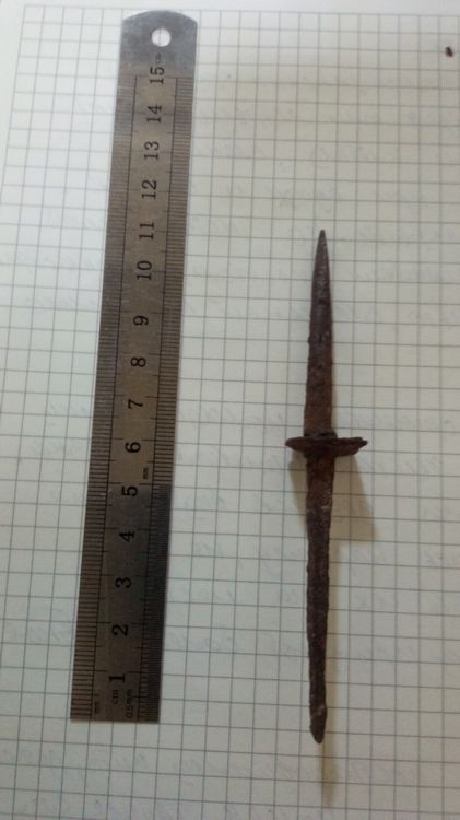 Коллеги прошу определить наконечник Копьё или Дротик? Размер 13 см.Сопутка Монеты Пантикапей .Боспорское государство 2-3 век..И оценить .
