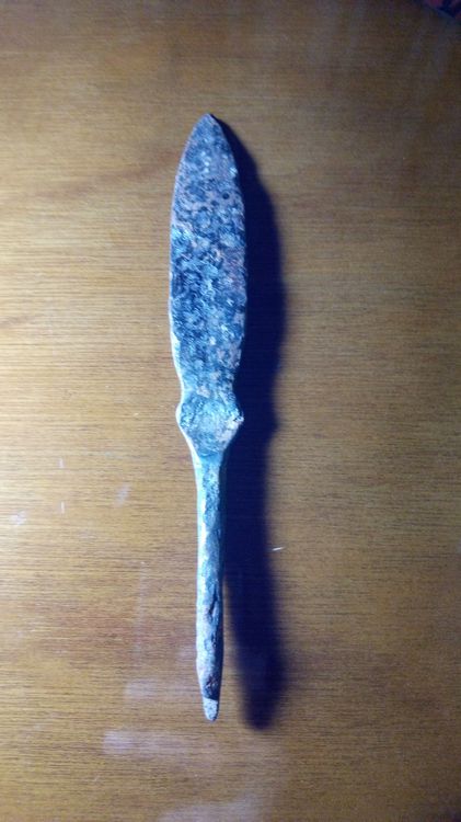 QUOTE(Юрий Хасиков @ Nov 23 2020, 00:04) Здравствуйте. Помогите пожалуйста определить датировку и оценить это копьё, найденное в Северной Осетии. Материал- железо, кровостёк- выемка вдоль всего лепестка с одной стороны. Найден на очень большой глубине. Проверял по книге наконечников но увы так ничего похожего и не нашёл. Уважаемые участники проекта. Не ужели ни кто не может определить к какому периоду относится копьё и примерную его стоимость? Помогите пожалуйста. Заранее спасибо. -------------------- Улыбнись ведь Господь смотрит на тебя!