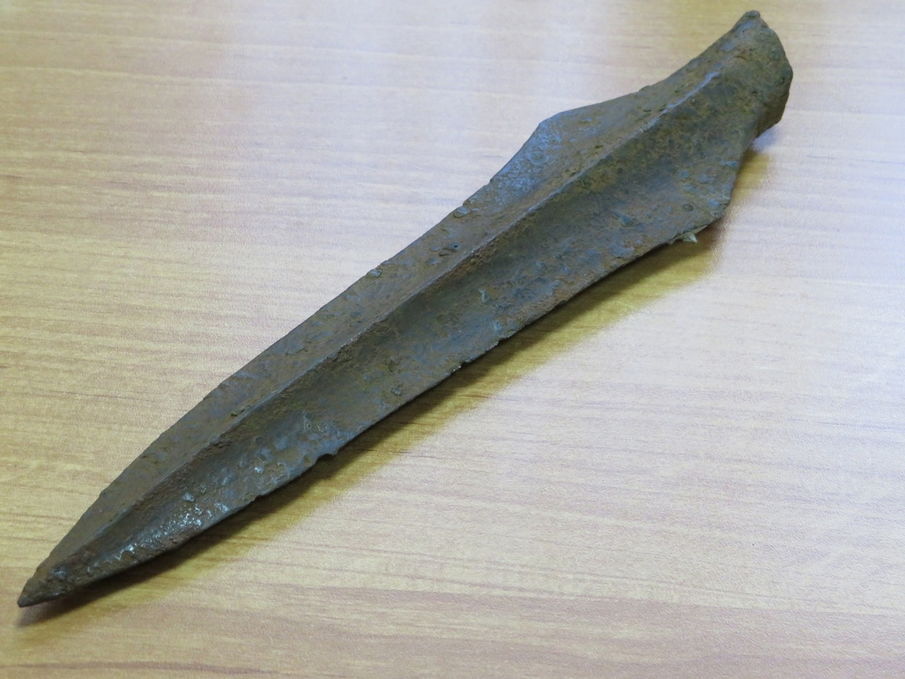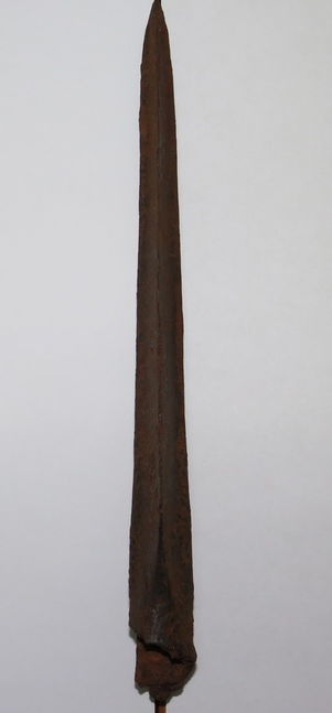Уважаемые форумчане! Подскажите, пожалуйста, по предмету, похожему на пику. Найден во время рытья траншеи под воду. Длина 45 см, вес 750 грамм, металл крепкий, обоюдоострый, отверстия под древко наискосок. Если можно, дайте информацию по датировке и возможной стоимости предмета, если таковая есть?