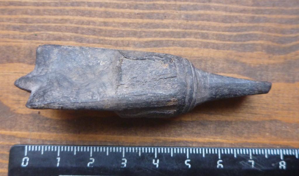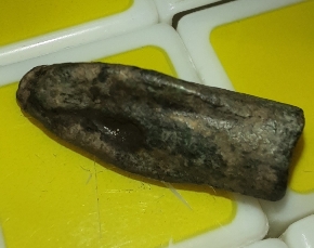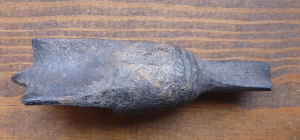 Четырёх гранная оболочка от пули? Вообще не похоже. И отверстие под стрелу есть. Может фото не передаёт объем?