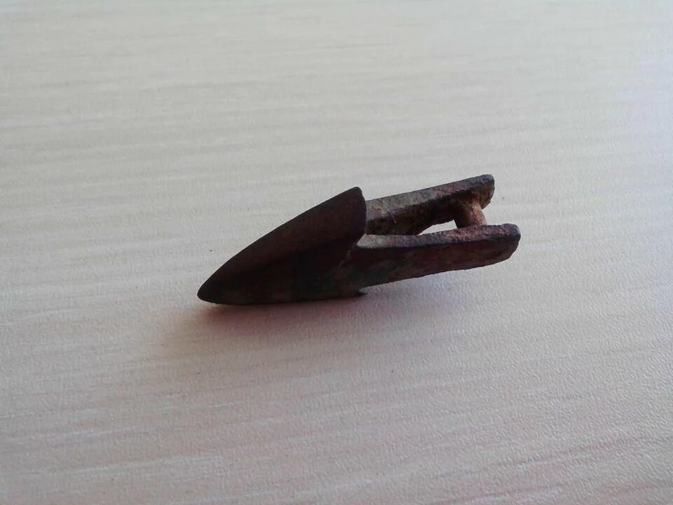 Бронзовый или около того наконечник, сделанный древними очевидно рукожопами, так как весь кривой. Найден в огороде под Фряново, и подарен мне.