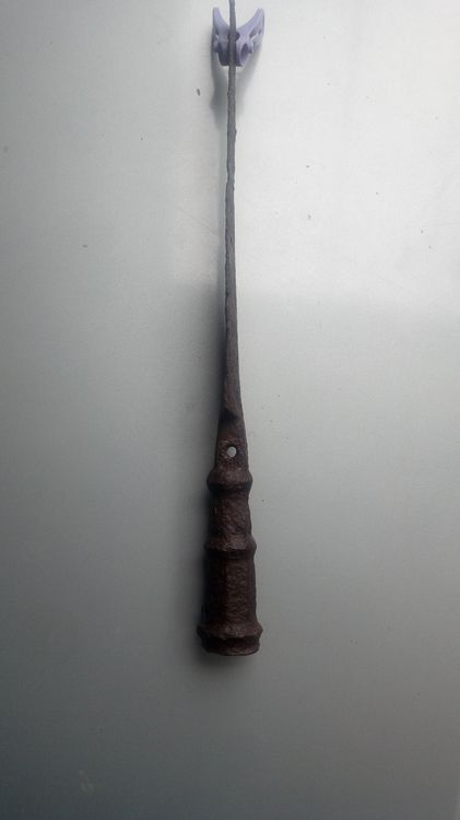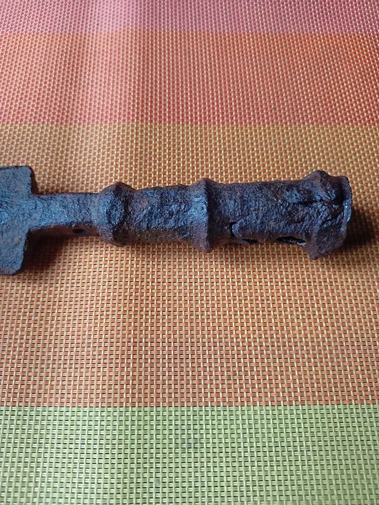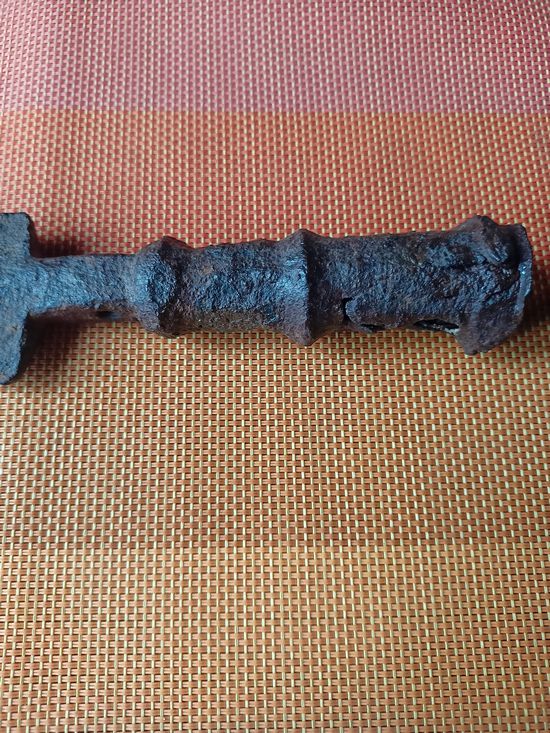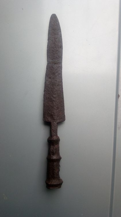 QUOTE(Frontier++ @ May 6 2022, 21:16) Втулка как у протазанов/эспонтонов 18в, возможно он и есть, клин только ушатанный, возможно с утратой, непонятно по фото, или переточенный при жизни в рогатину для охоты. Денег стоит по-любому от 1000 и верх, желательны более четкие фото, регион и сопутка, если была. Огромная благодарность за Ваш ответ. Вот подробный фотоотчёт как Вы просили. Найден в Ставропольском крае на старых фундаментах где сопутка в основном Советского раннего периода по мне ни как не связанна с этой вещью. С уважением Юрий. Вложенные эскизы изображений -------------------- Улыбнись ведь Господь смотрит на тебя!
