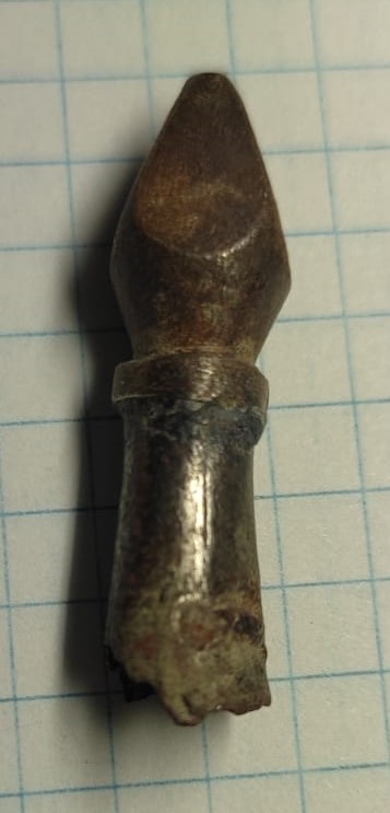 QUOTE(Nebelwerfer @ Feb 23 2023, 20:40) Раньше такие не попадались. Подскажите к какому времени относится? Материал вроде сталь с красноватым оттенком. Это не наконечник. |