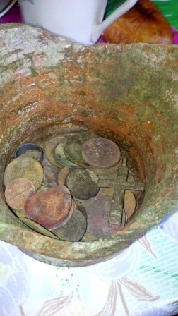 Всем доброго.....Вот в аккурат сегодня с ночного копа приехали....Пару дней спускали водохранилище от паводка ....и мы следили за данным процессом. Поскольку после закрытия шлюзов , вода прибывает с большой скоростью. .....Остались " в ночь" . Затопленные старые усадьбы вода обнажила. Вот красота . В запасе по времени была только ночь и до обеда ....По находкам , конечно не очень.....но , как говорится , и этому рады. В черепке монетки жили. Видимо , не однократно вода и катера дербанили кубышку....Такое происходит лишь раз в году ....