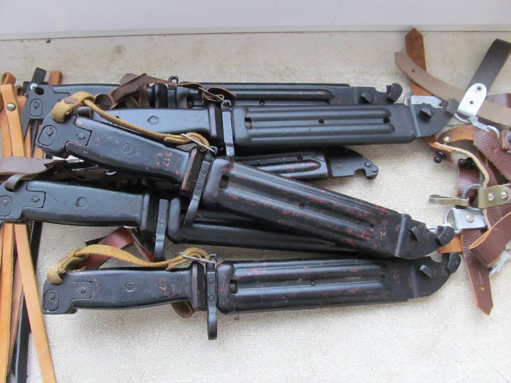 На сегодняшний -день в наличии вот такие предметы а именно-штык ножи акм 6х4 черного цвета с клеймом на крестовине "УЧ"-предметы не пилены и не отпущены (настоящие боевые предметы)-довольно редкий вариант штык-ножа ! Такие штыки шли для учебных частей и тренировочных лагерей !!Все предметы на одинаковых номерах-подвес и тренчик к каждому предмету. Залог за такой нечастый предмет 3500 р и пересыл!!!