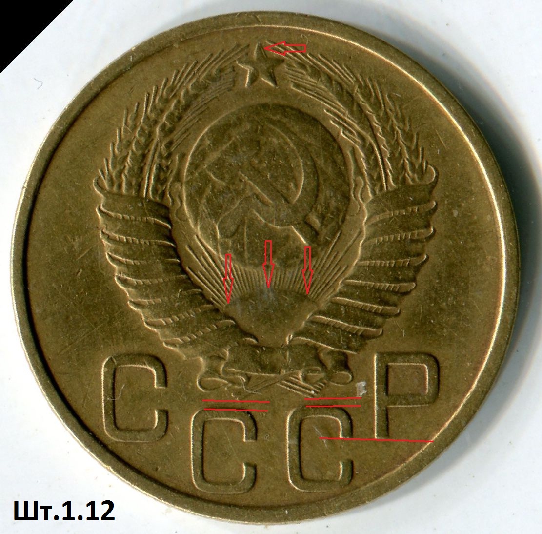 И чтоб сделать тему полной,нужно ещё упомянуть о немного нечастой разновидности 3-х копеек 1949 года Ф-96(л.ст.шт.1.12),оцененную А Федориным в 10 у.е.