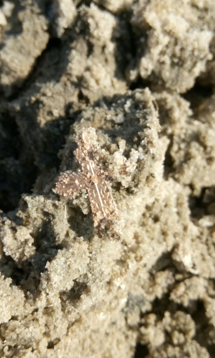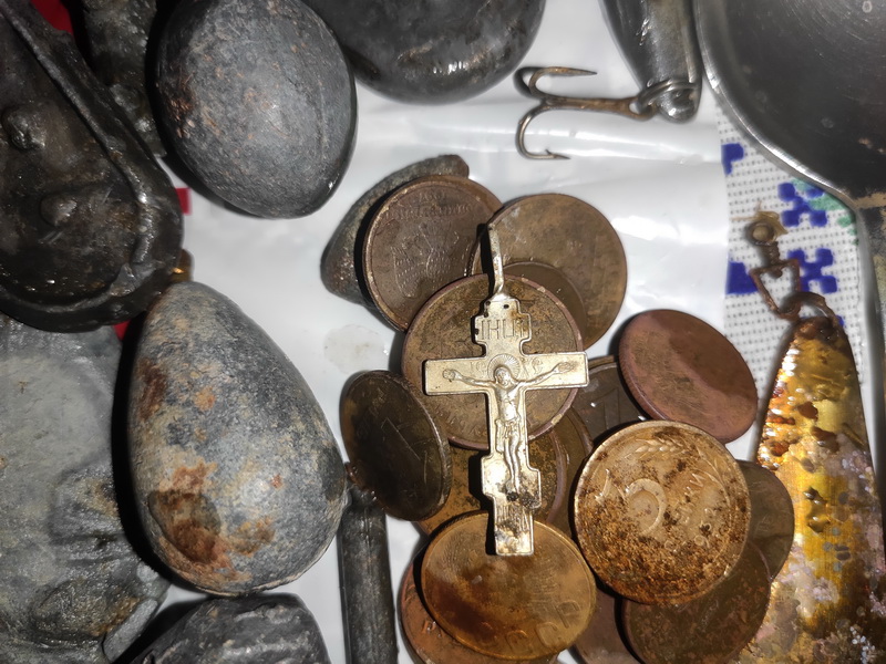 Два дня пока песок на берегу был прихвачен бороздил в воде,но увы результат пока ноль,окромя мелочи ходячки и двух бронзовых колечек-ничего интересного.Вчера вроде песочек чуток оттаял ,прошёлся по сухому:перстак 925 пр. и крестик 0,6 г. Мелочь ,а приятно