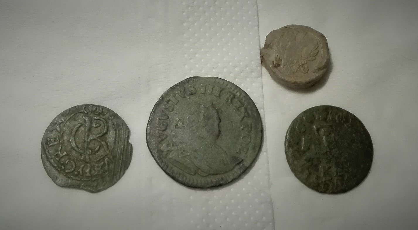 3 монетки (грош 1754 г., рижский шиллинг Карла XI и баратинка), пломбочка с орлом, и море цветного мусора (которые потенциально могли быть монетами, по сигналам). Вложенные эскизы изображений -------------------- Поиск и мечта - наше ремесло