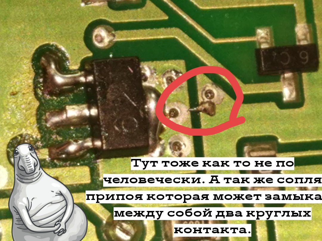 QUOTE(tsv @ Feb 10 2019, 23:14) ... Когда я увидел проводок, и перебитую дорожку, то сначала я подумал что это они закосячили и восстановили, но потом я понял, что они нарочно перебили дорожку и припаяли это в другое место (не знаю зачем) вторая перебитая дорожка тоже непонятно зачем.. ну и эта срань проработала всего два дня... Это косяки изготовителя самой печатной платы: 1. дорожки резали-восстанавливали чтобы определить контакт в переходном отверстии. 2 Проводок поверху - восстановление дорожки где было несколько переходных отверстий (возможно плата многослойная). 3. Обрезанная дорожка могло быть даже последствия "сопли" на первом фото - "лечили" коротыш... Ясно одно нормального производства-контроля нет |
