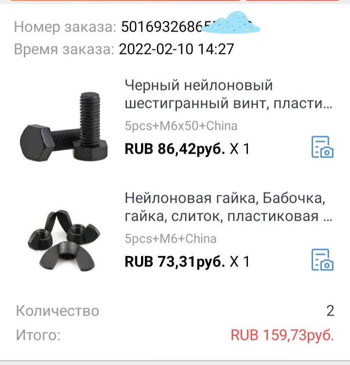 QUOTE(seres @ Feb 10 2022, 10:37) В общем заказал болтики-барашки на али с бесплатной доставкой. По получению отпишусь в теме. Нейлоновая, гайка, слиток))))))) ну нормально. |