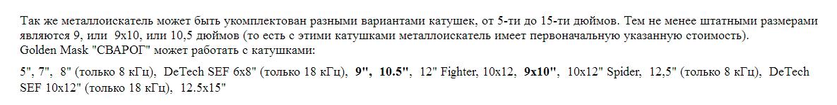 GM1, GM1+, GM1+UK, GM4, GM4WD, "Сварог", "Фракиец" и т.д. - по сути одно и то же, с добавлением или отсутствием тех или иных функций и различной раскраской "морды". Катушки этих приборов взаимозаменяемы. Так же, ко всем этим приборам, как и наоборот, подходят катушки от GM5 и GM5+. -------------------- "Я бы взял частями, но мне нужно сразу..." ©