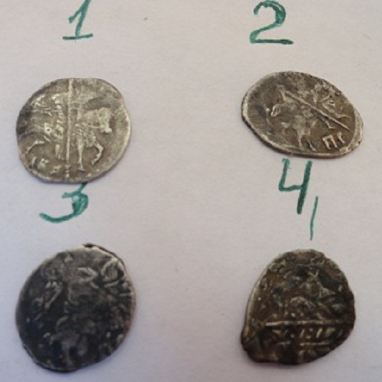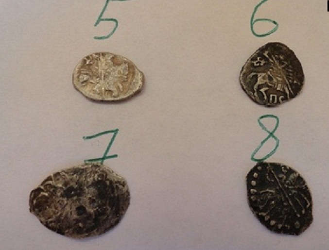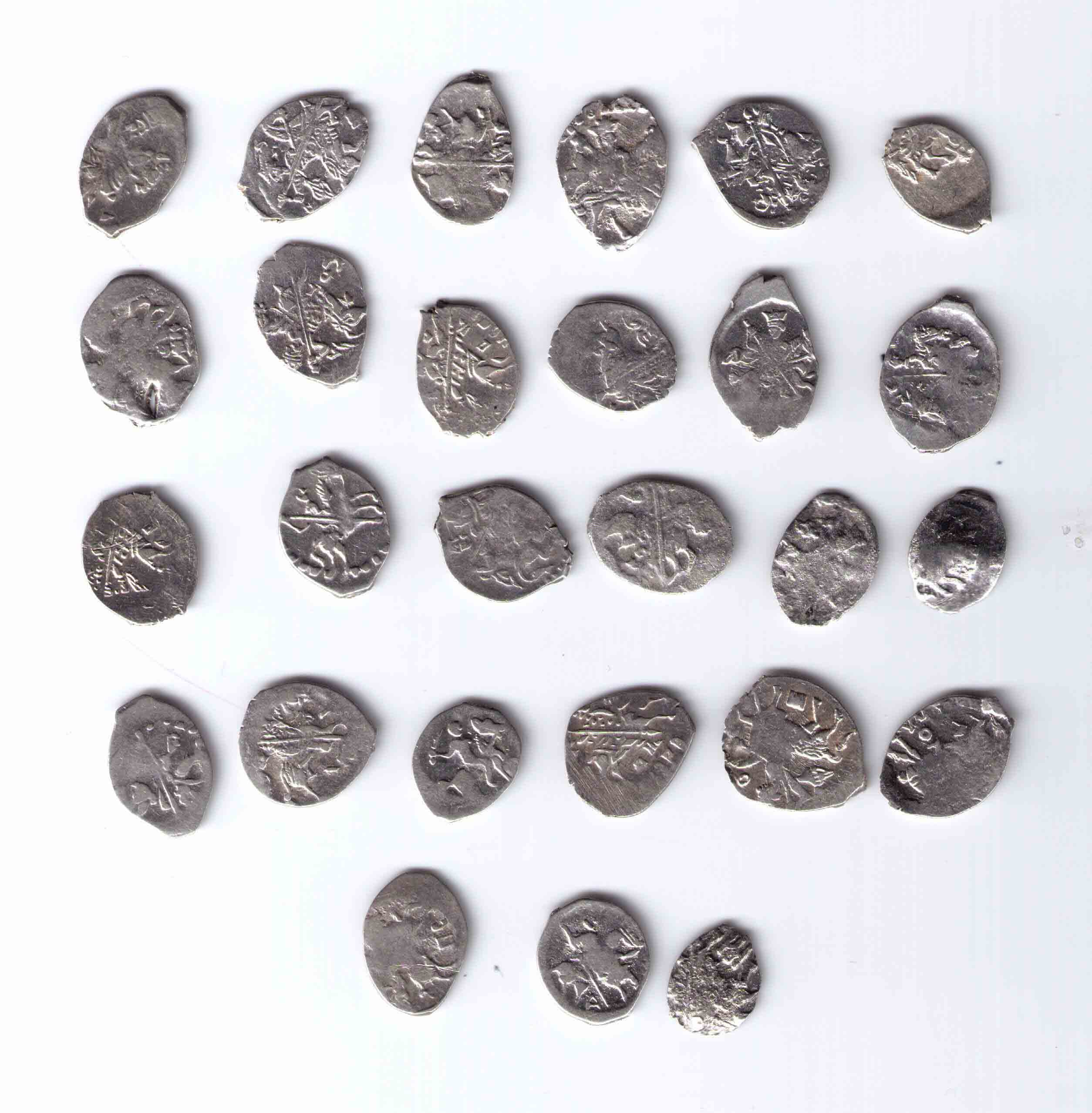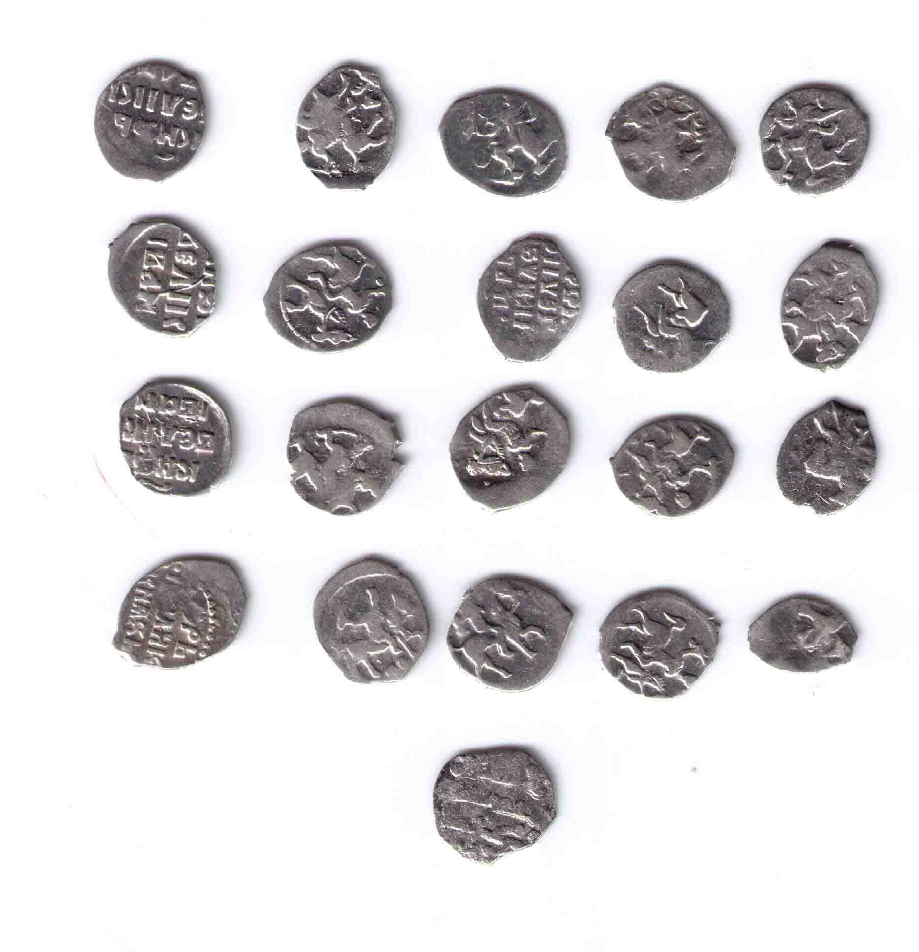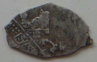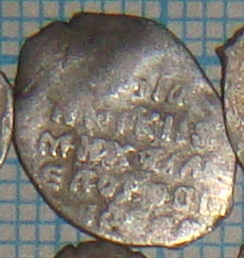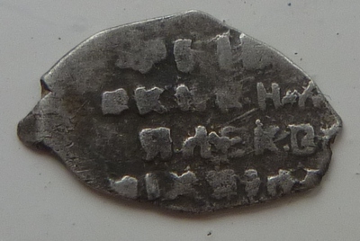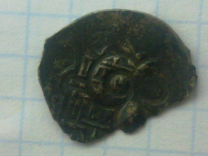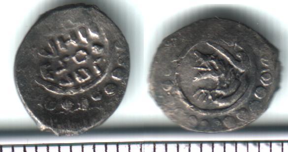 Подскажите по цене определялась на дружественном форуме. Фальшак времен Василия Дмитриевича. По мотивам его денги "двуногий дракон с раскрытой пастью", Мец.243. Не исключаю также, что это окончательно выродившийся тип Мец.243...244. Штемпель строчника на них ("князь великий") резан неряшливо, а тут и вовсе нечитаем, налицо некие буквоподобные значки.
