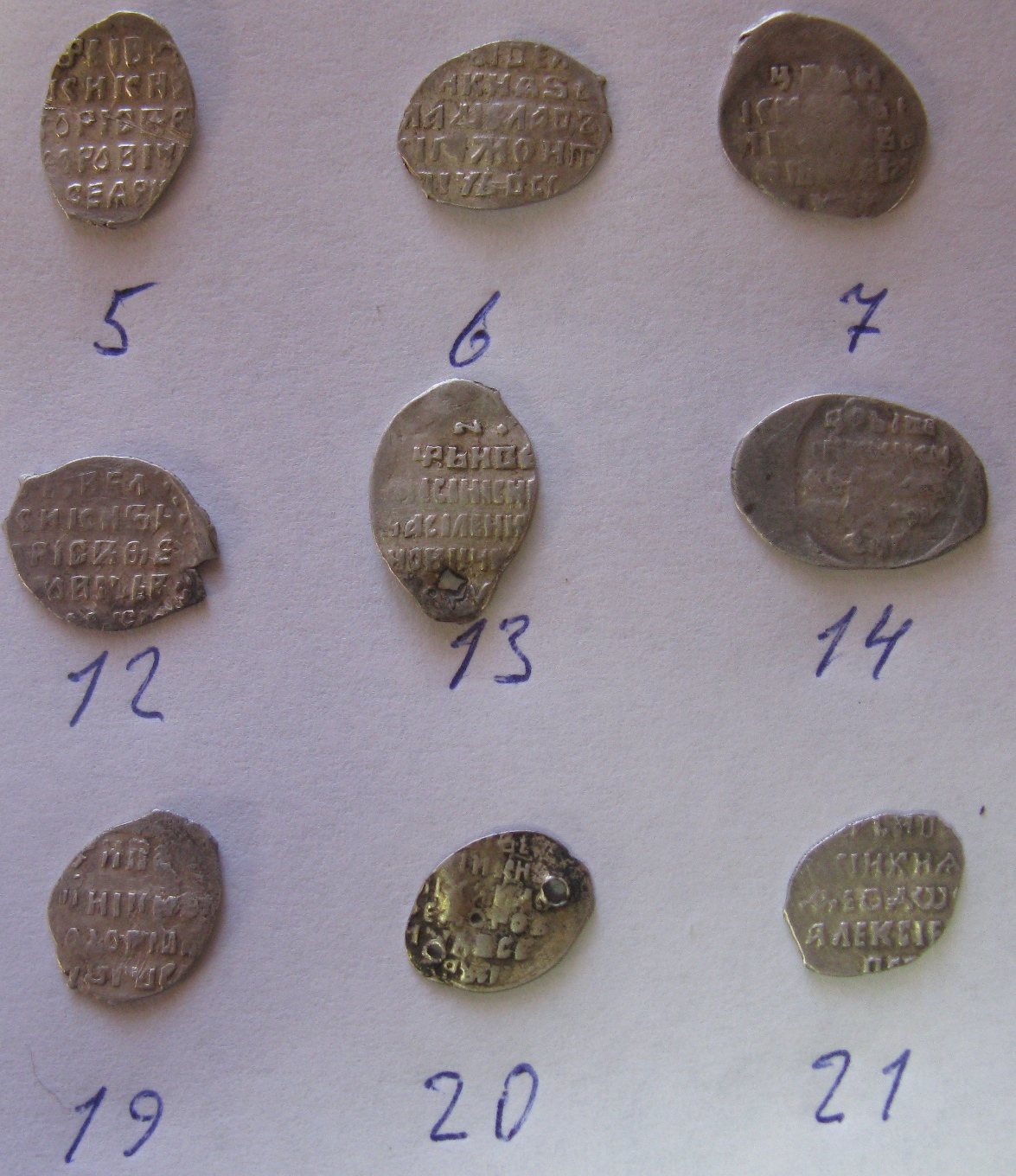 Монетки - Борис Годунов, Михаил Федорофич, Алексей михайлович и Петр Алексеевич.